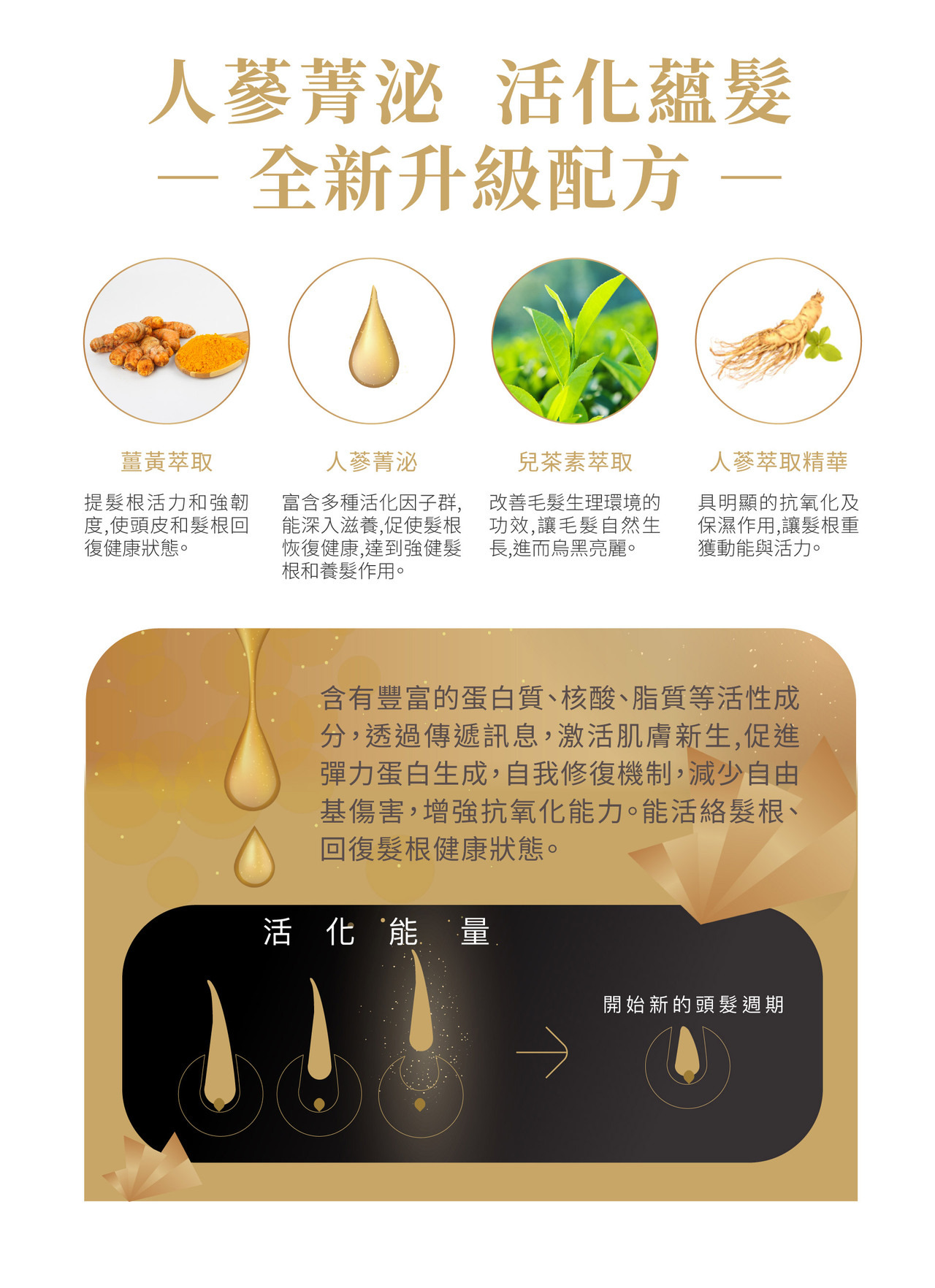 兒茶素萃取:強化髮根、中和自由基、強效抗氧化,保護生長